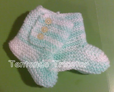 Só fiz um pé para testar a receita e nem fiz o Icord que é usado para amarrar o sapatinho no pé. Mas gostei muito e pretendo fazer um outro completo, mas vou usar uma lã mais fina, neste usei um restinho da lã família só para teste.